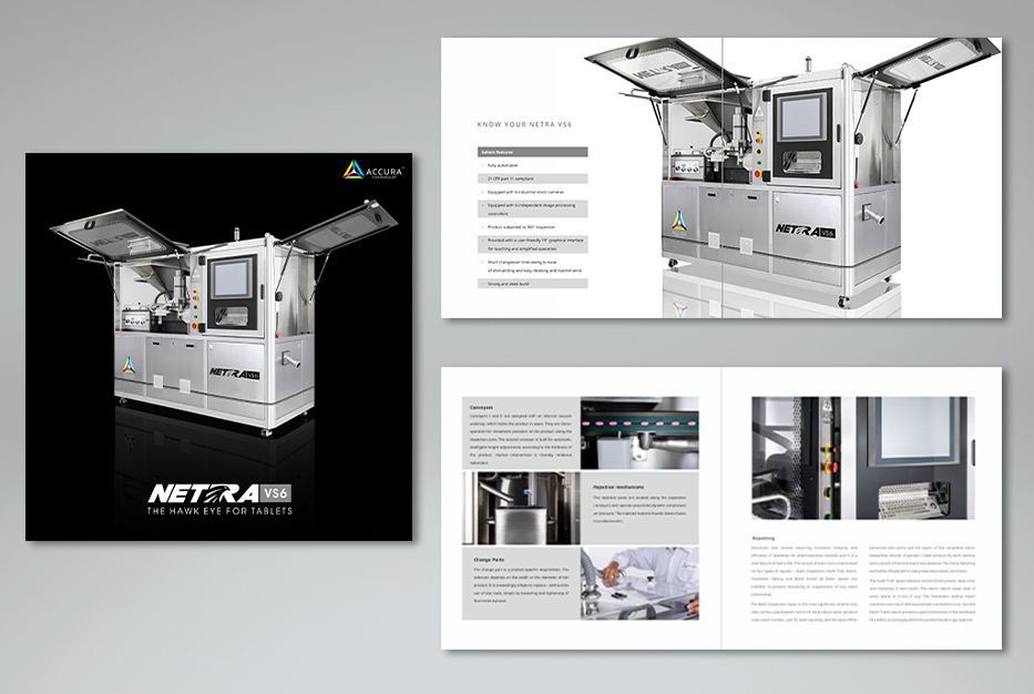 A comprehensive brochure was designed to complement the website. This printed material became an invaluable resource for Accura Pharmaquip’s sales and marketing teams. It provided a detailed overview of NETRA VS6’s features, benefits, and technical specifications. The brochure played a crucial role in face-to-face interactions during exhibitions and client meetings.